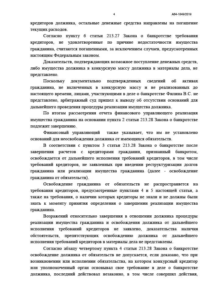 Полное списание долга